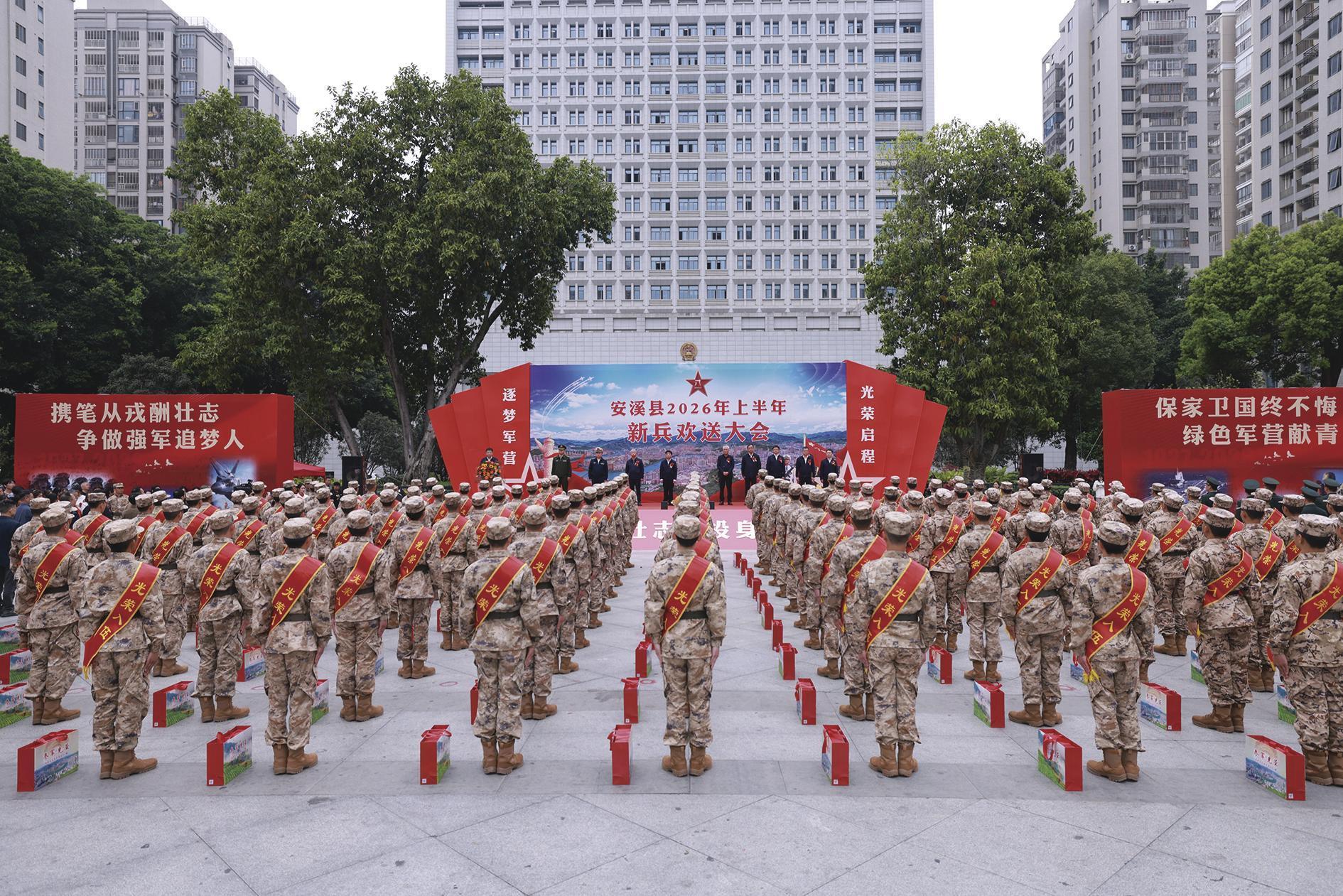 2026年上半年新兵欢送大会在县人民广场举行